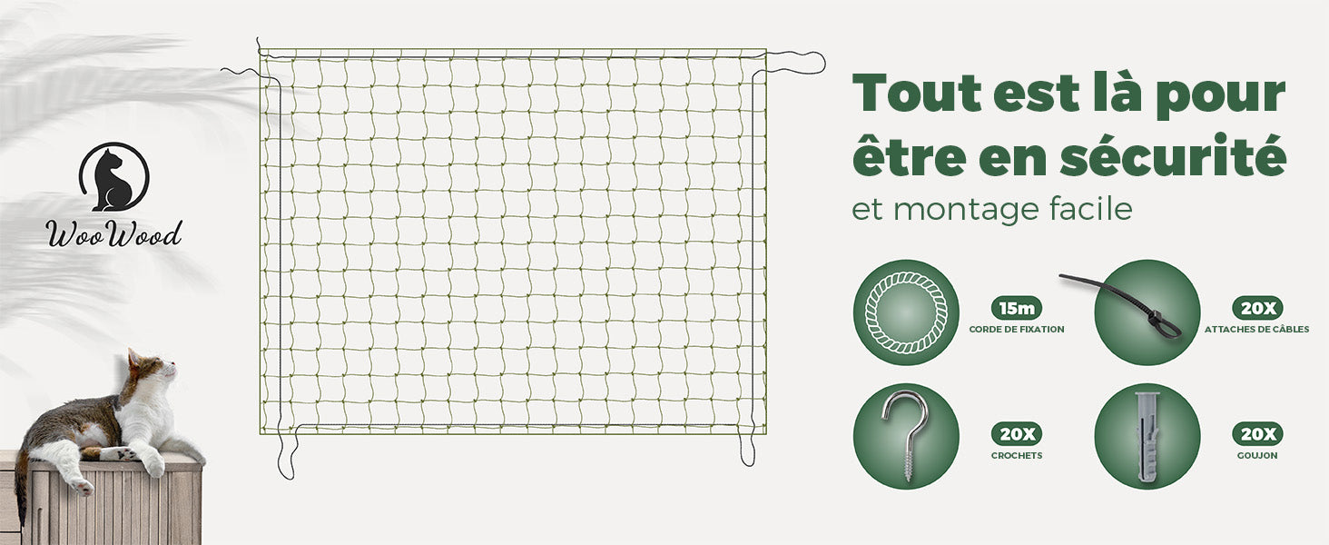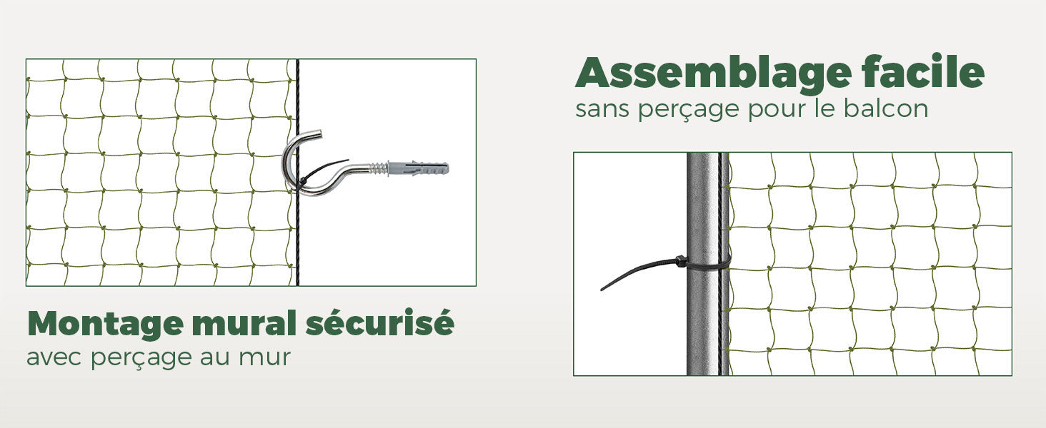 - ✅ FACILE À INSTALLER : Fixez votre filet de balcon et grille pour chat sans effort grâce aux 20 serre-câbles, crochets et chevilles inclus. Avec cette protection de balcon pour chat, vous pouvez rapidement et en toute sécurité créer votre balcon pour vos animaux de compagnie bien-aimés.