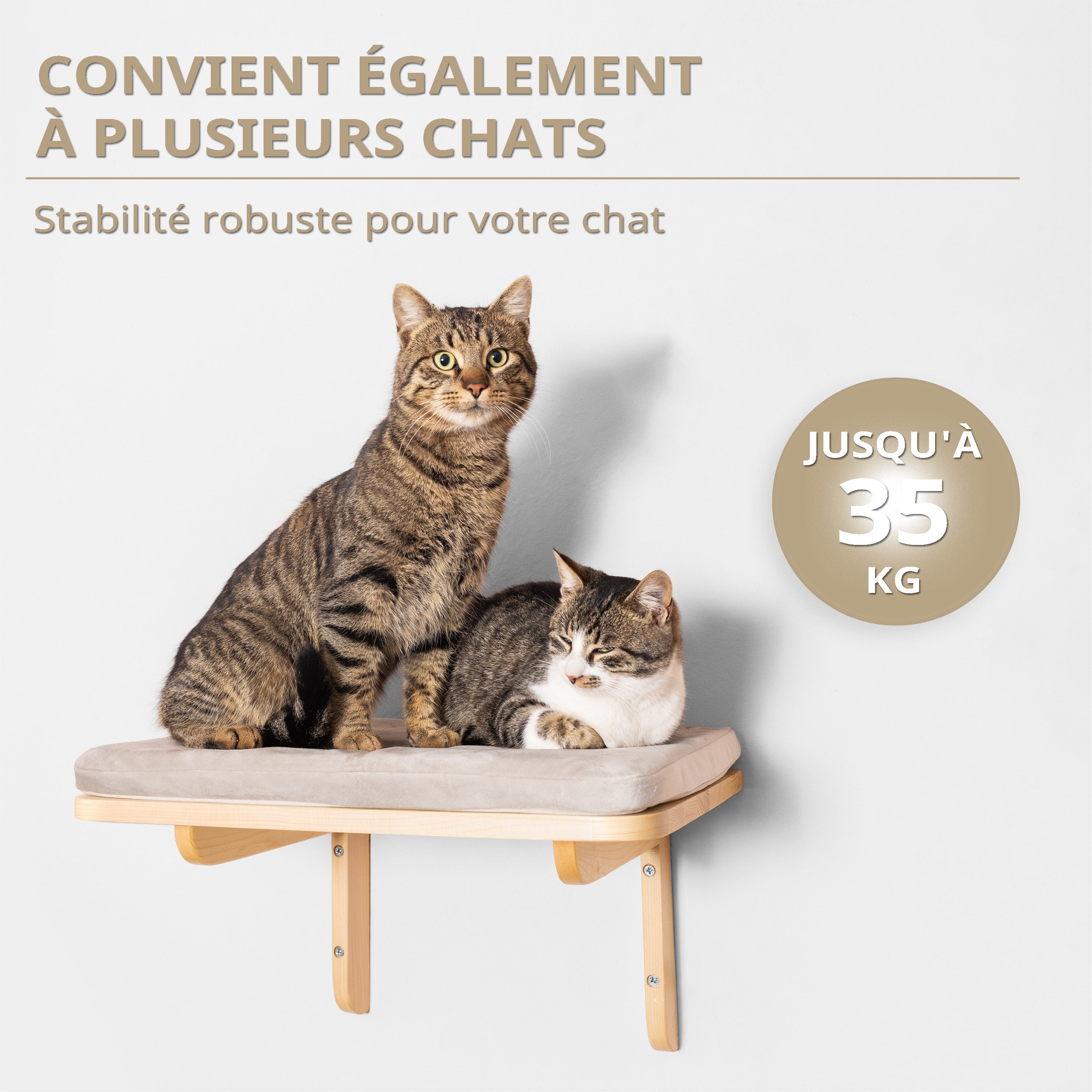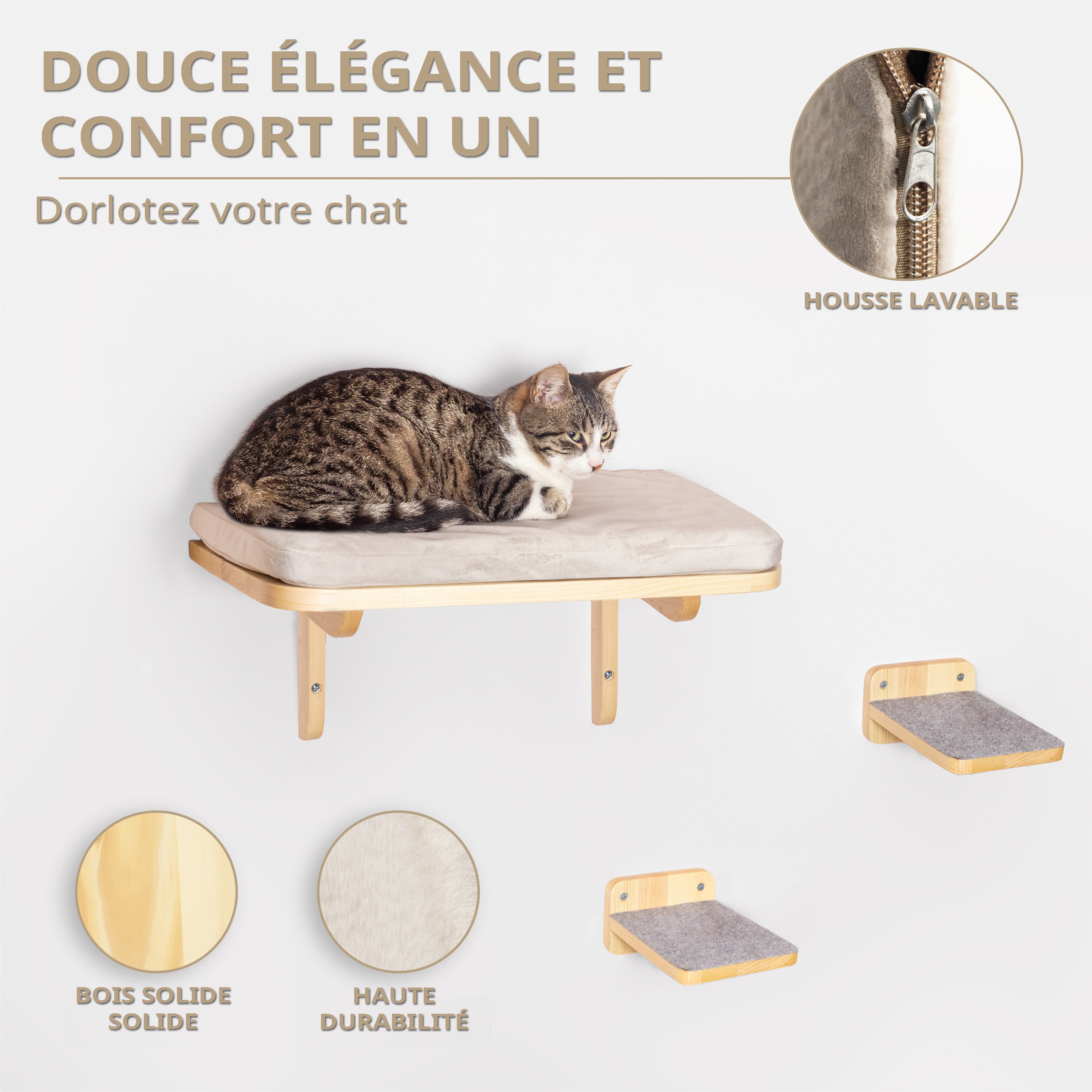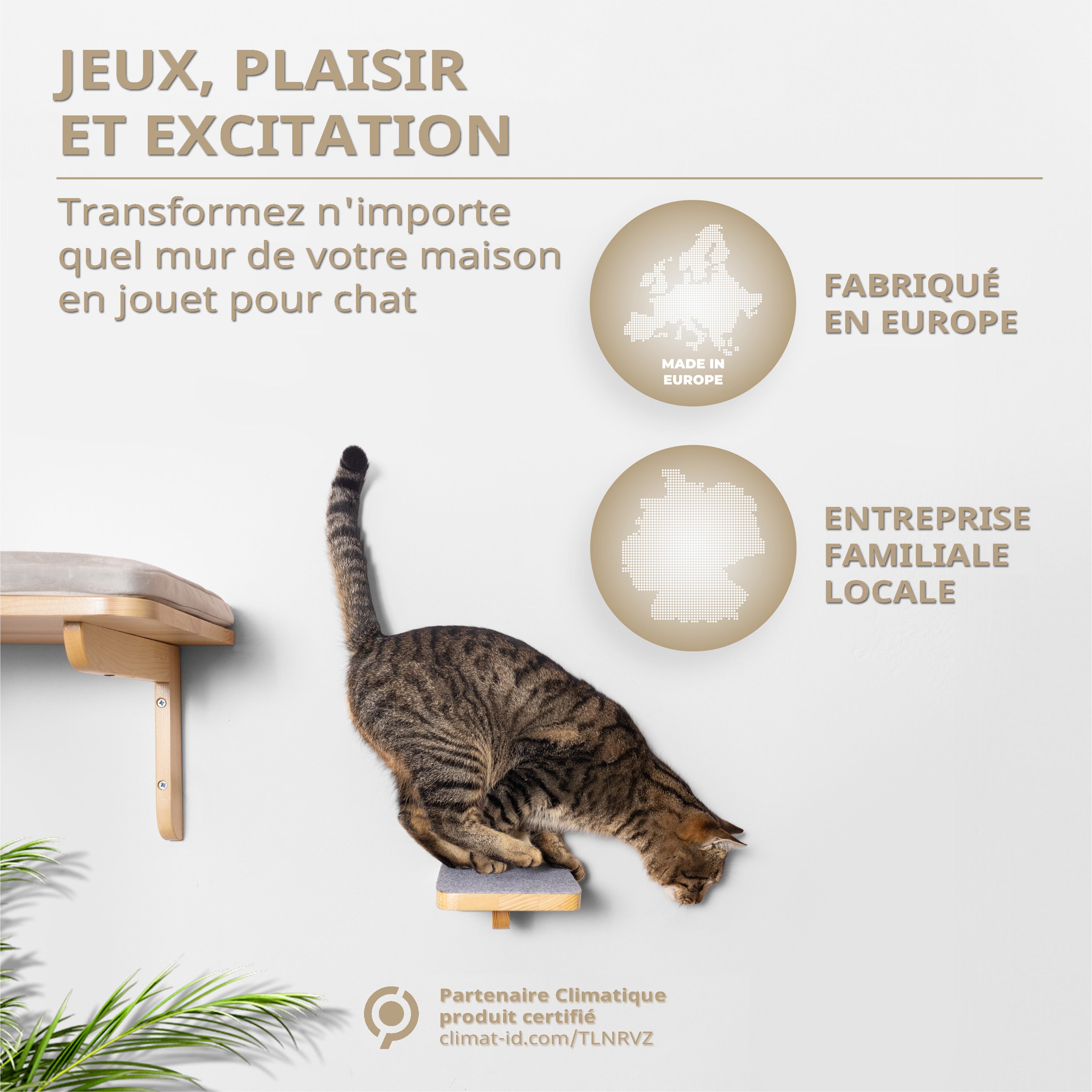 Mur d'escalade pour chats comprenant 2 escaliers muraux pour chats | bois naturel