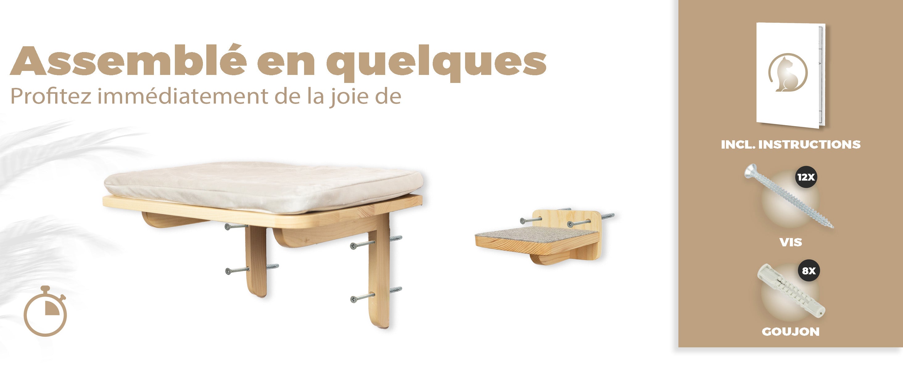 Transformez n’importe quel mur en un paradis pour votre chat en quelques étapes simples. Le design innovant du mur d'escalade Woowood permet une installation facile, y compris des instructions de montage complètes pour plus de commodité.