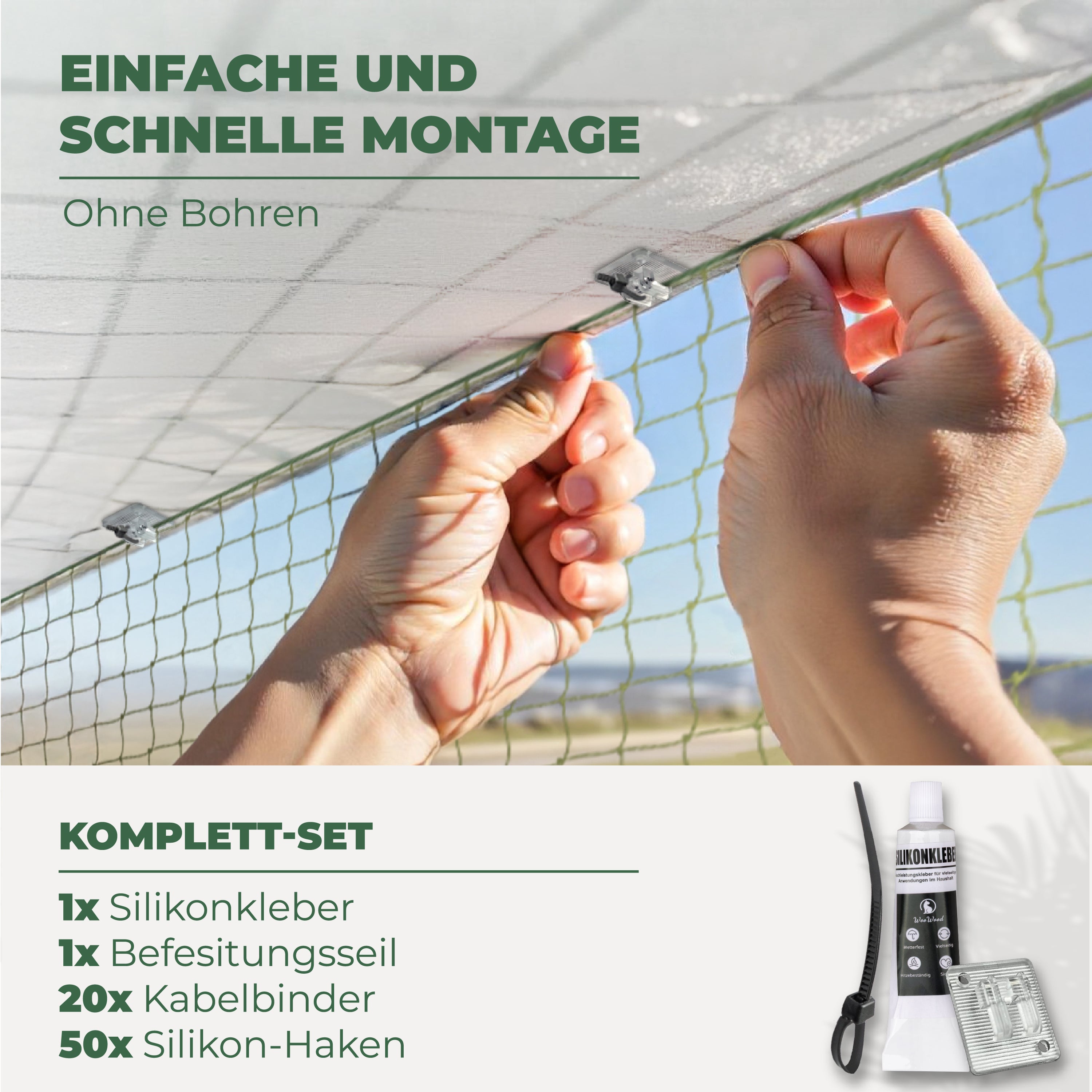 ✅ EINFACHE BEFESTIGUNG: Befestigen Sie Ihr Balkonnetz und Katzengitter schnell mit den 50 Kabelhaken und hochwertigem Silikonkleber. Der Katzen Balkonschutz sorgt für Sicherheit auf Ihrem Balkon.